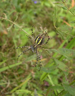 September 14, 2006 Black and Yellow Agriope, Agriope aurantia When photographed, this spider in the Kingsley Park Bioswale had just captured a fly. A few minutes later it had wrapped its future meal in a cocoon of silk and set it aside.