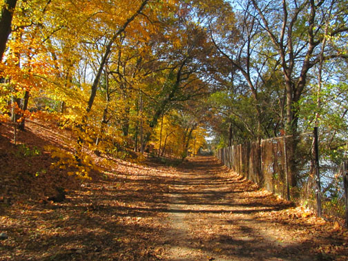 November 2, 2013 Lower Kingsley Path The afternoon sun turned this stretch of the path around the base of Kingsley Park into a tunnel of red and gold.