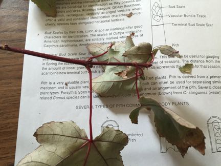 branch on top right is a sugar maple, Acer saccharum. The brightly