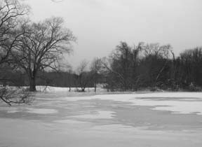 December 28, 2004 Monochrome World Two photos of Black's Nook, one in color, the other, black and white. There is very little color in the landscape on a cloudy December day.