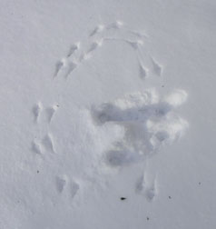 December 21, 2004 Snow Tracks A few inches of snow becomes a temporary record of the animals that have passed by. These tracks of a squirrel and a bird, probably a house sparrow, were on the patio in back of Neville Place.
